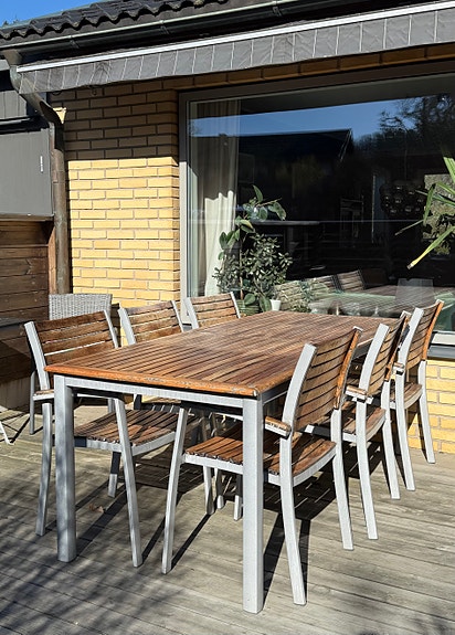 900 krMatgrupp med utebord och 6 stolar i teak och metallMölnlycke5 timLägg till i favoriter.Öppna annons