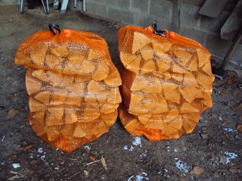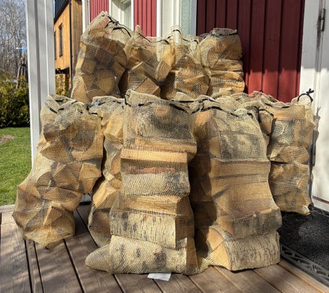 Ved i nätsäckar