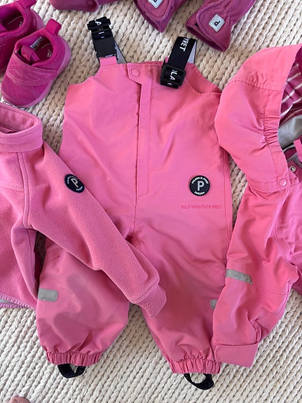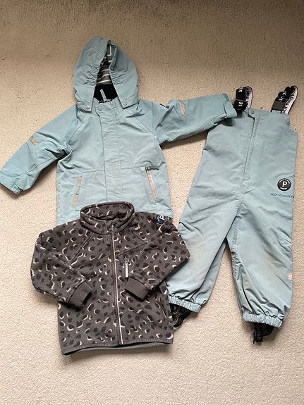 Under vintern är det viktigt att hålla de små varma med rätt kläder: ulliga heldräkter, sockor, vantar, mössor och ytterkläder. En overall är ofta snabbare att ta på än separata jackor och byxor, och snön har svårare att tränga in. I annonserna bör du kolla skicket på ytterkläderna, till exempel hur bra muddar och ben kan justeras, om det finns många reflexer och om kläderna är vattentäta.