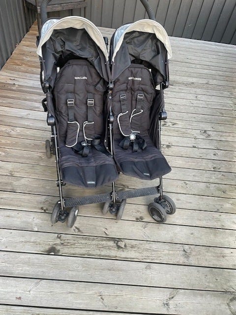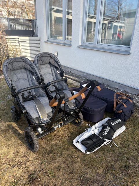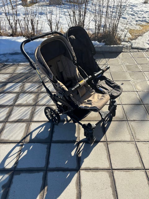 Tvillingbarnvagn, perfekt fungerande skick, märket Mountain Buggy, ges bort.