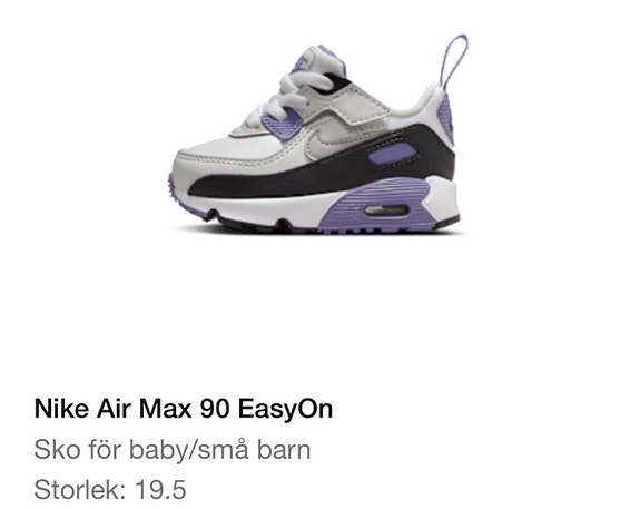 550 krNike Air Max 90 EasyOn sneakers barn unisex storlek 19,5 vit/lilaStl. 19 NikeEnskede1 dagLägg till i favoriter.