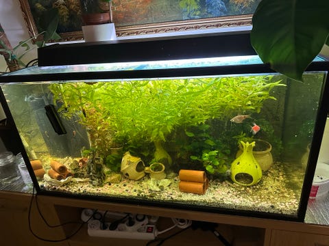 Akvarium med skadat hörn