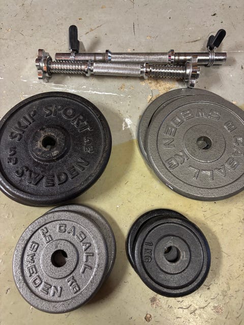 749 krSkivstång 120cm med 2 st 10kg vikterVärmdö, Stockholm2025-10-01Lägg till i favoriter.Öppna annons