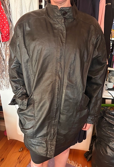 250 kr80/ tals rymlig skinnjacka svart .42 se mått , axelstoppningStl. 42Skara17 timKöp nuLastbil i rörelseKan skickasLägg till i favoriter.