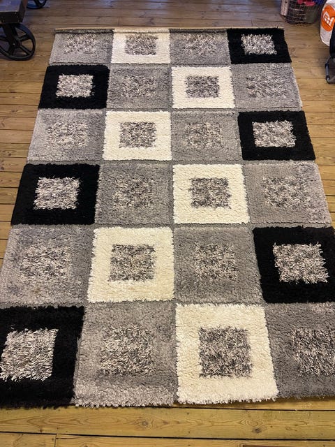 700 krTjockare matta 160x230 cm Kort lugg, svart grå vit rutig wiltonmatta (?)Hägersten3 dagarLägg till i favoriter.