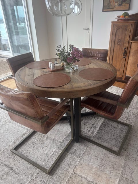 massivt runt träbord
