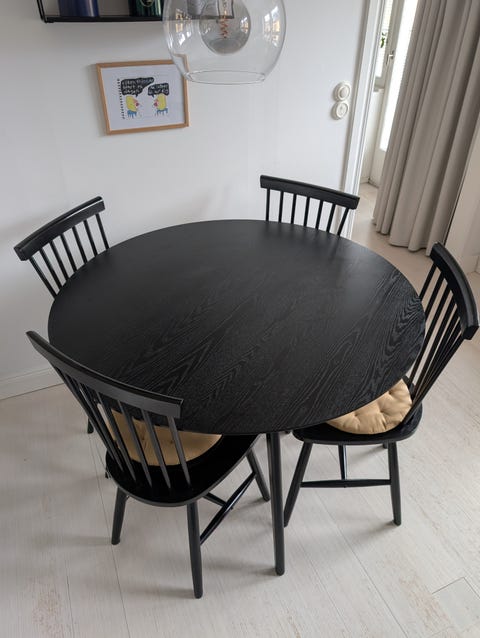 Runt matbord i svartbetsad ask