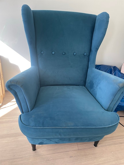 1 600 krBlå fåtölj med matchande fotpall Ikea Strandmon IKEAUppsala23 timLägg till i favoriter.Öppna annons