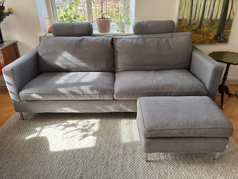 Om du funderar på att köpa begagnade möbler är det bra att ta exakta mått på den plats du har tillgänglig i ditt hem. Jämför sedan med måtten i annonserna. Kolla också om soffan har avtagbart och tvättbart överdrag eller andra skötselråd. Genom att köpa begagnat ger du möbler nytt liv och sparar samtidigt pengar.