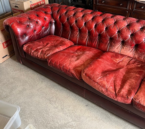 Soffa chesterfieldstil röd läder