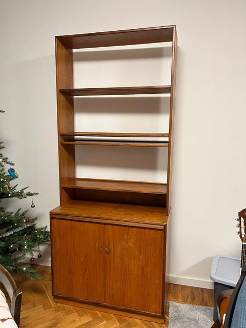 Bokhylla i teak med skåp