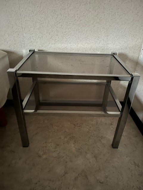 Sängbord i glas och krom