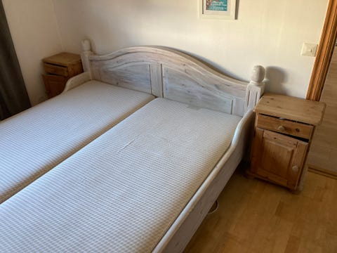 Dubbelsäng furu med nattduksbord
