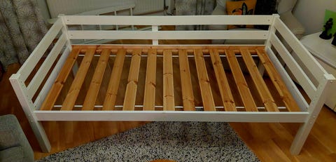 Låg sängstomme med Ikea-madrass 160 cm