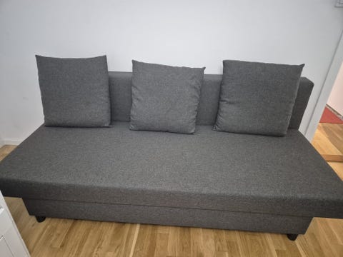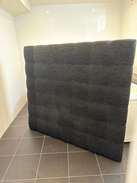 Sänggavel i mörkgrått tyg