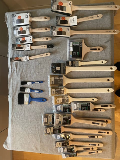 Tips: Tänk på att kontrollera skicket på penslar och färg innan du köper dem.