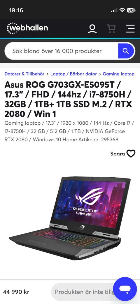 4 999 krAsus ROG G703GX RTX 2080 AsusSödertälje1 minKöp nuLastbil i rörelseKan skickasLägg till i favoriter.