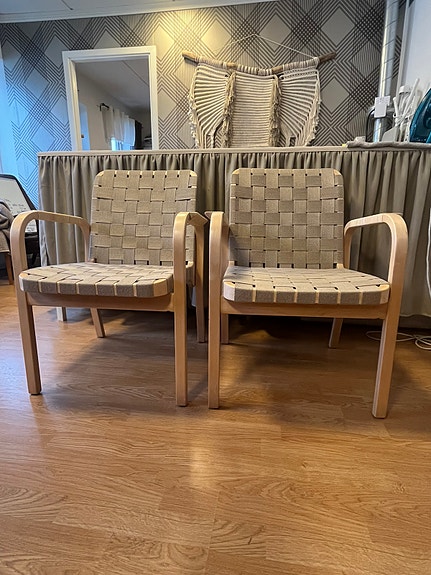 1 200 krArtek/Alvar Aalto fåtölj med vävd sits ljus textil och böjträ ArtekYtterby7 marLägg till i favoriter.