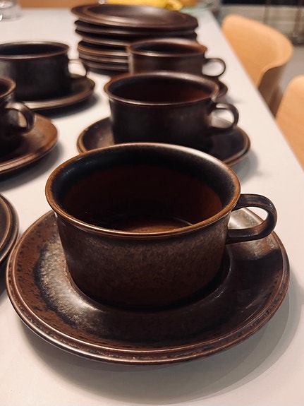 1 200 krArabia Ruska 6 tekoppar med fat och assietter i brunt porslin ArabiaKalmar6 aprLägg till i favoriter.