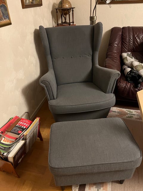 2 fåtöljer med fotpall