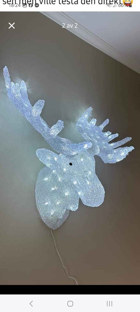 800 krKonstsmide älghuvud i akryl med LED-belysning, 65 cm högt, i vit färg.Enköping11 timLägg till i favoriter.