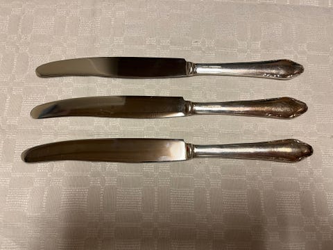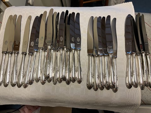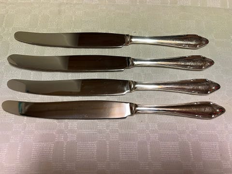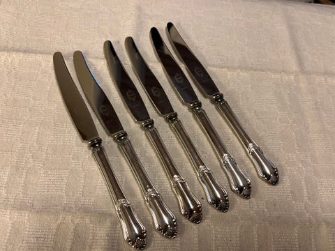 140 krBarnbestick Knivar i nysilver, 20 kr/stHuddinge1 febKöp nuLastbil i rörelseKan skickasLägg till i favoriter.