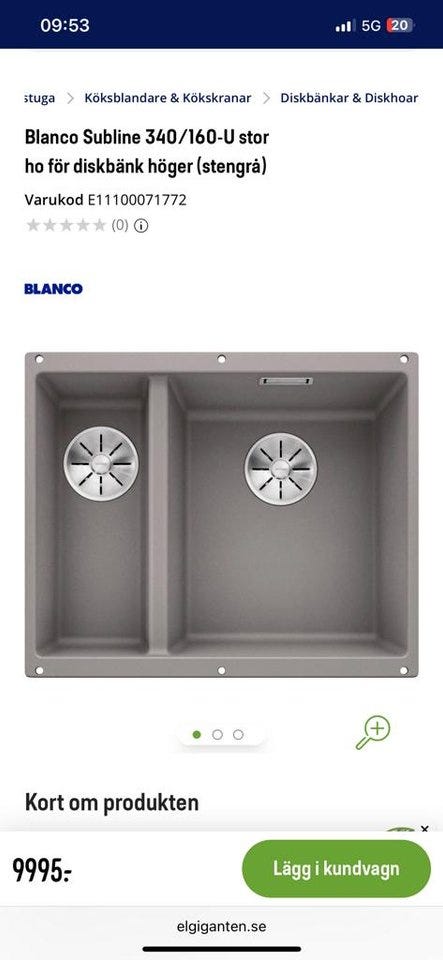 2 000 krHelt NY Blanco Subline 700-U diskho granit komposit, nypris ca 6500:-Bunkeflostrand26 novLägg till i favoriter.