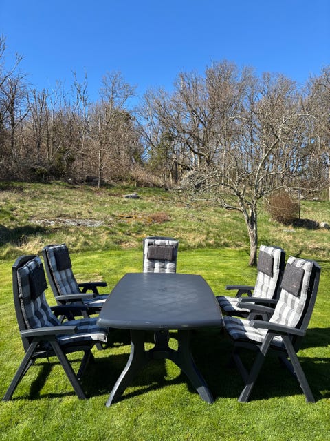 1 500 krUtemöbelgrupp med bord och 4 stolar i grå konstrottingÅrjäng42 minLägg till i favoriter.Öppna annons