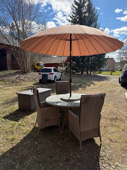 5 250 krTrädgårdsgrupp runt bord med parasoll konstrotting gråUppsala8 timLägg till i favoriter.Öppna annons