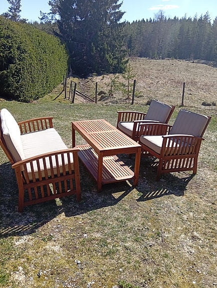 3 200 krTrädgårdsgrupp i trä med soffa, fåtöljer och bordÖsterhaninge4 timLägg till i favoriter.Öppna annons