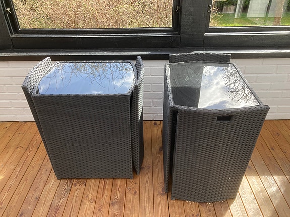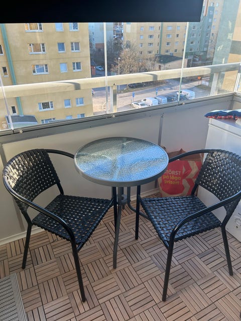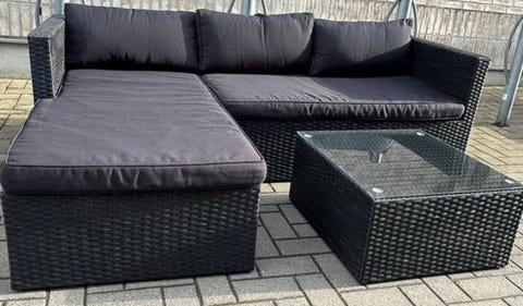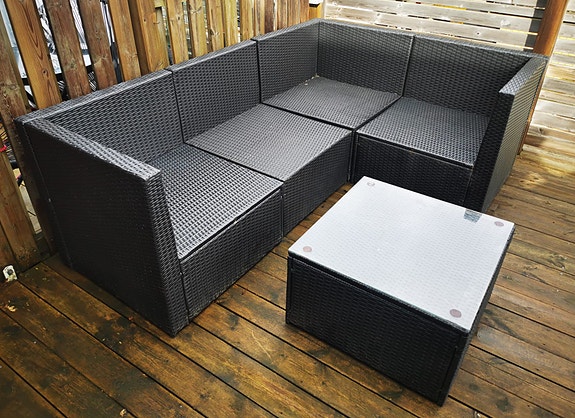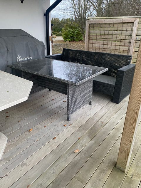 loungegrupp med glasskiva bord