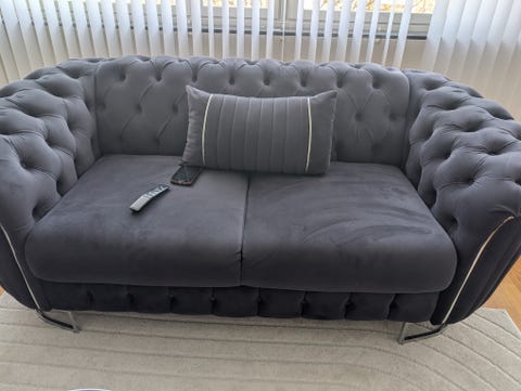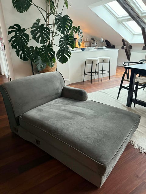 Grå schäslong i sammet