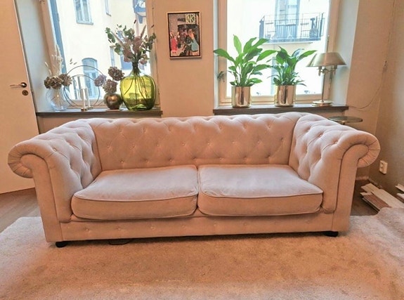 Burhéns soffa 3-sits beige tyg