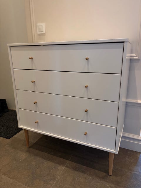 Vit byrå med fyra lådor