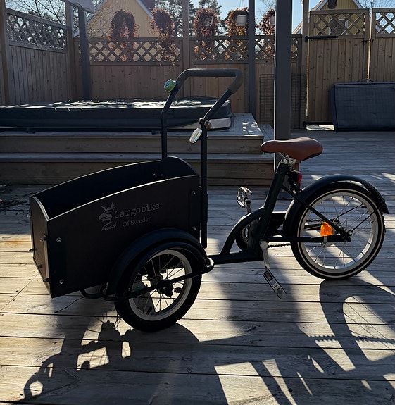 6 500 krCargobike of sweden trehjulig lastcykel barncykel 12" svartHägersten1 aprLägg till i favoriter.