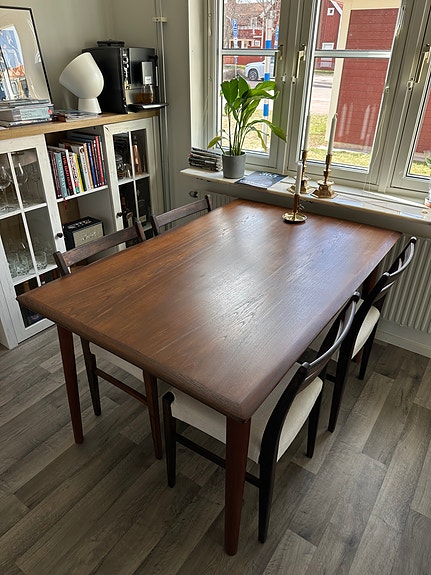 16 500 krVintage teak matgrupp IKEA 1960-tal, 6 stolar + utdragbart bordUllared17 aprLägg till i favoriter.Öppna annons