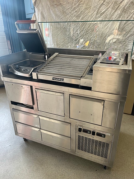 SäljesKybänk med disk ho, kylskåp,frys,diskställ,grillkylbänkTyresö18 timSashas storköksutrustningLägg till i favoriter.