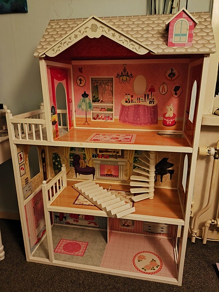 600 krStort möblerat dockhus / Barbie hus från ”KidKraft”, 4 plan med garage och hissSvalöv1 timLägg till i favoriter.Öppna annons