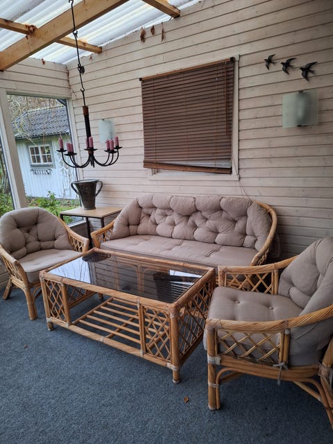 7 500 krUtemöbelset med soffa, fåtöljer och bord i rotting och beige dynorOskarshamn11 decLägg till i favoriter.