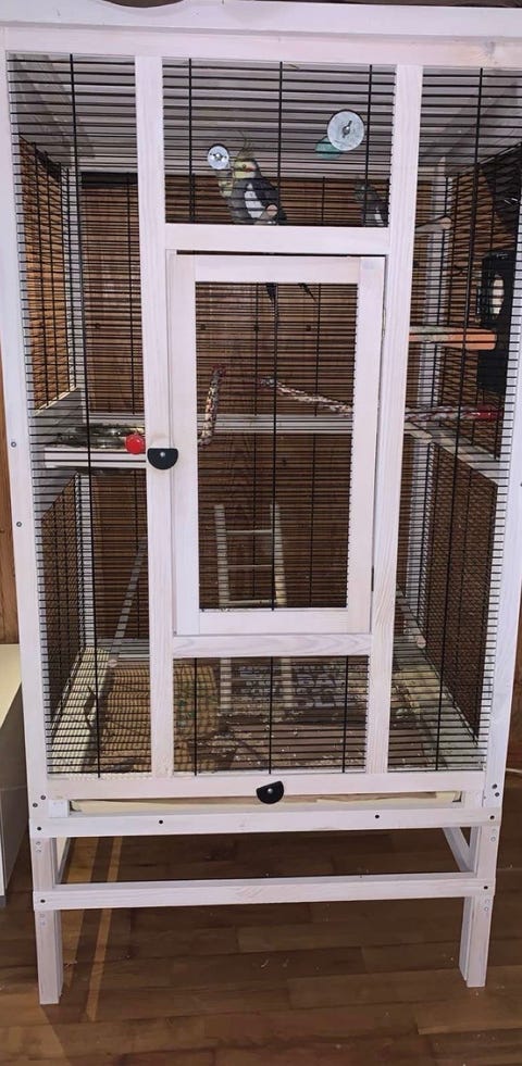 Undulater med Fågelbur 35x45x63 cm vit metall