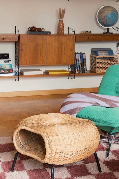Fåtölj med fotpall