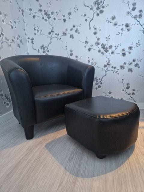 Fåtölj med fotpall