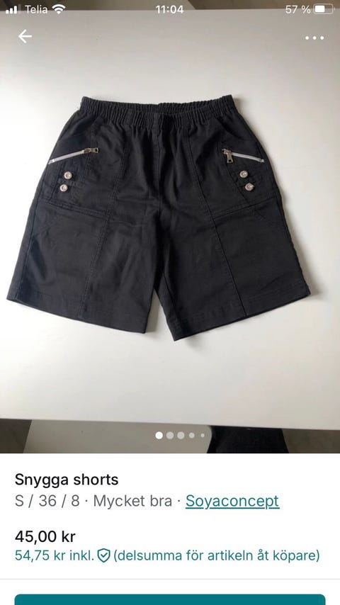 50 krSoyaconcept shorts dam svart bomull storlek SStl. S SoyaconceptBorlänge8 febKöp nuLastbil i rörelseKan skickasLägg till i favoriter.