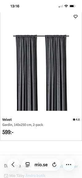 600 kr3st Mio Velvet gardiner 140x250 cm grå sammet 2-pack MioTäby15 marLägg till i favoriter.Öppna annons