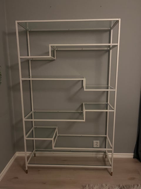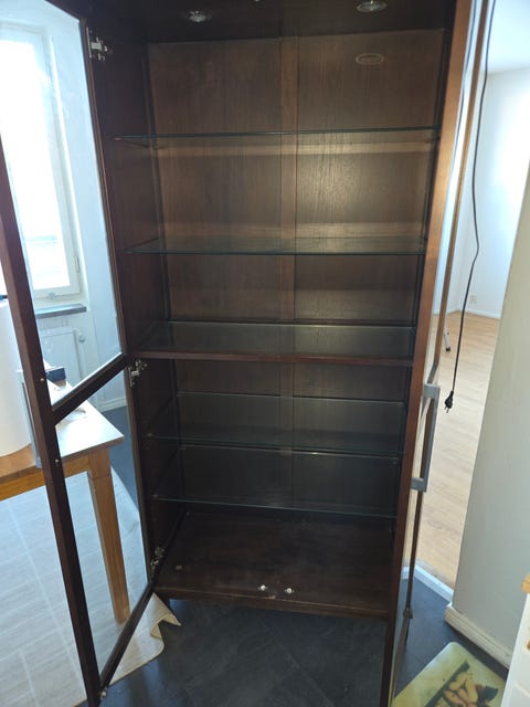 Vitrinskåp med glashyllor och belysning