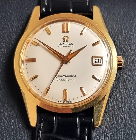 42 500 krOmega Seamaster Calendar 14701, kal 562, 18K guld, 34mm, ca. 1961 OmegaUllared3 marLastbil i rörelseKan skickasLägg till i favoriter.