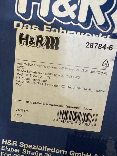 1 500 krH&R 28784-6 sänkningsfjädrar VW Passat 4MotionMunkedal, Västra Götaland15 marLastbil i rörelseKan skickasLägg till i favoriter.Öppna annons