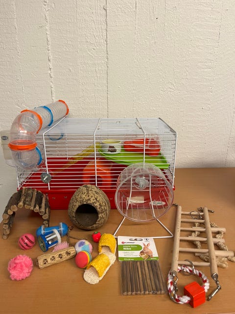 Hamsterbur med tillbehör