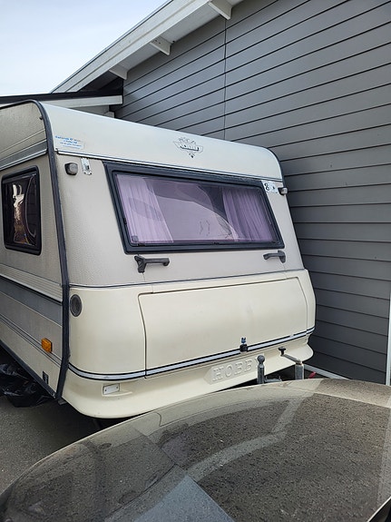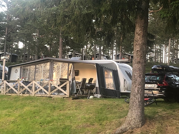 Förgård med tak över husvagnen