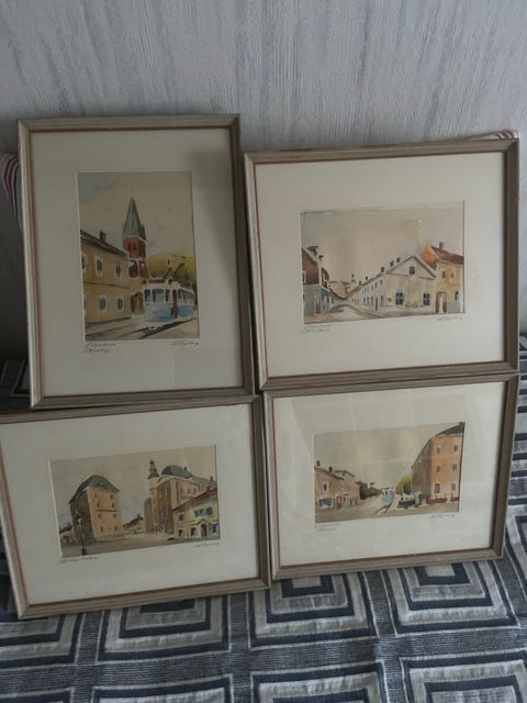 Äldre inramade tavlor